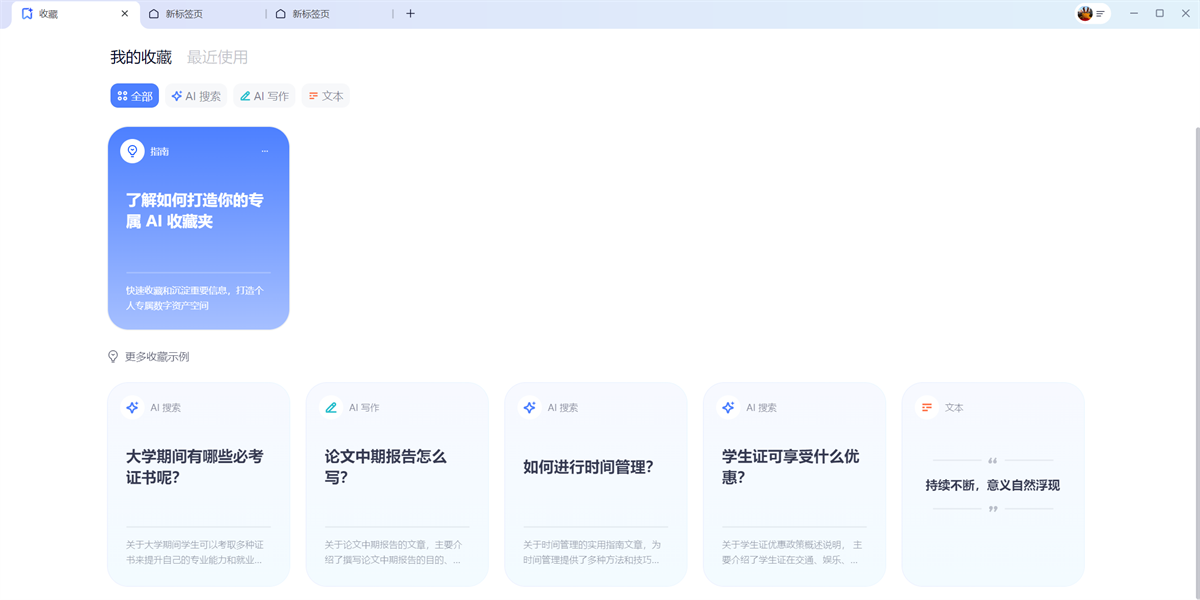 夸克浏览器PC版,你的AI搜索,全新的超级搜索框。能搜知识、找经验、查询健康问题,AI整理全网内容,生成优质回答;能一键写作创作,支持多种文案类型与字数要求;还能快速总结文件和视频…